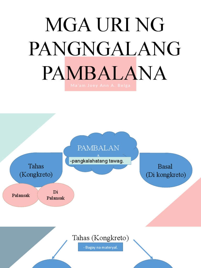 Ano ang Pangngalan. Bulaklak tsinelas perlas Basal - ito naman ay tumutukoy sa mga pangngalang pangkaniwang hindi nakikita o nahahawakan Ngunit nadarama nagugunitanaiisip at napapangarap. This worksheet asks the student to classify 24 nouns as pangngalang tahas or pangngalang basal.