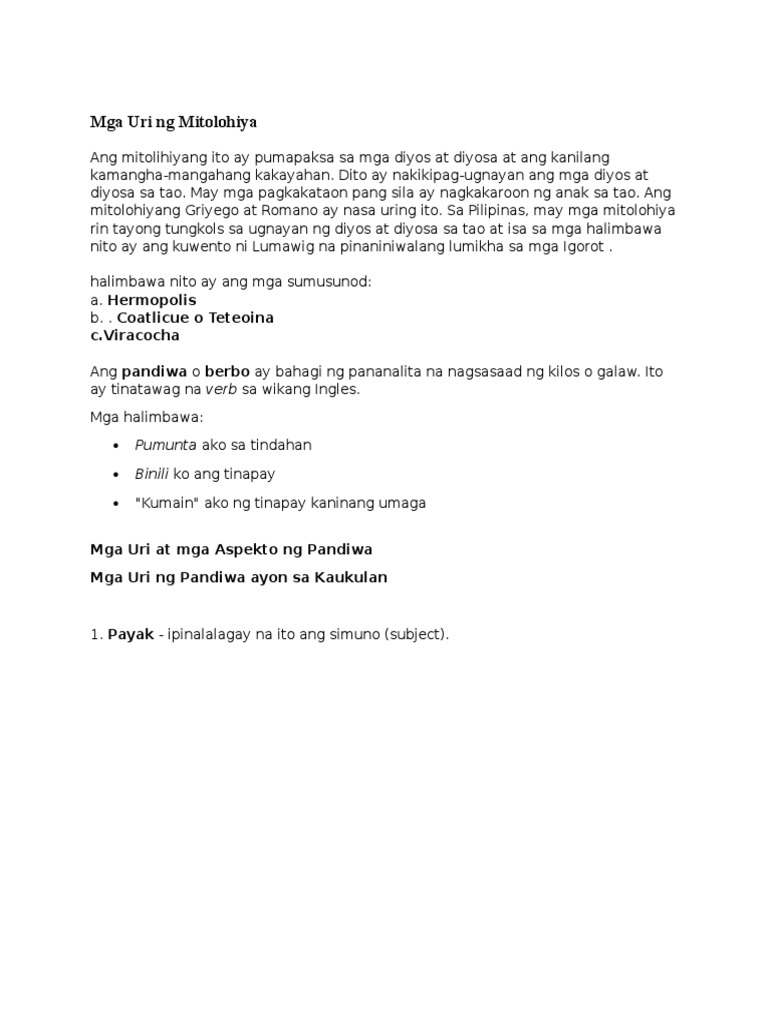 Masaya ang buhay ng mag-anak kahit simple lang ang pamumuhay. Ang salitang mitolohiya ay nangangahulugang agham o pag-aaral ng mga mito. A Hermopolis Paglikha ng daigdig sa Lungsod ng Hermopolis sa sinaunang Ehipto.